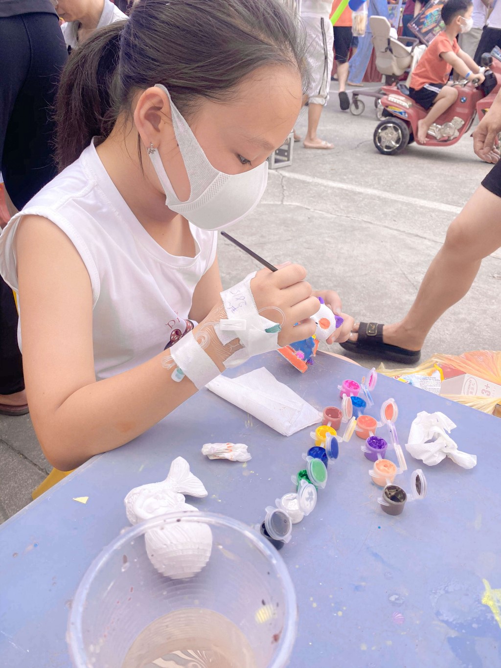 Một bàn tay lành lặn khi tô màu, vẽ tranh đã rất tỉ mẩn, đòi hỏi rất nhiều sự tập trung, kiên trì...vậy mà các em nơi đây đã quên mất bàn tay mình đang cõng những chiếc gạc quấn kim tiêm, vẫn miệt mài tô tô vẽ vẽ. Khoảnh khắc đó khiến chúng tôi ấm lòng.
