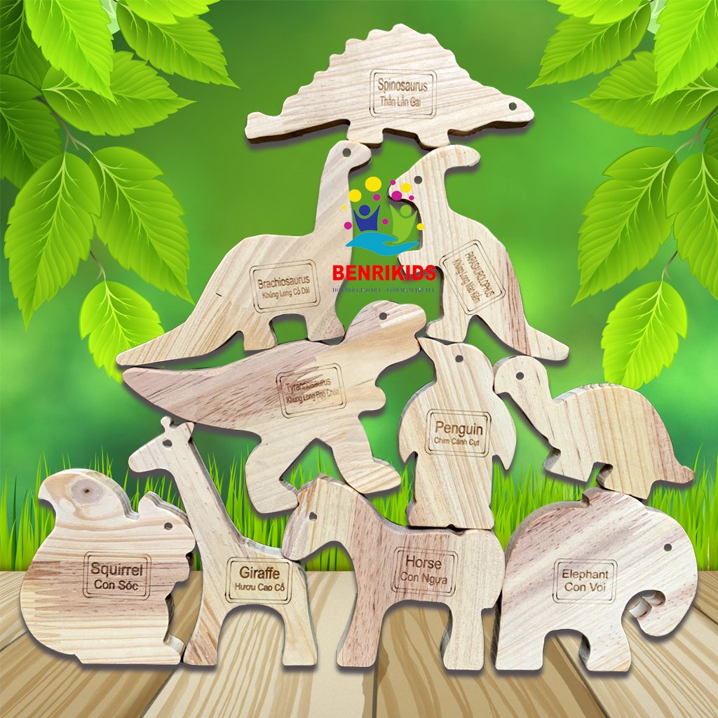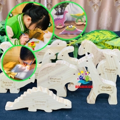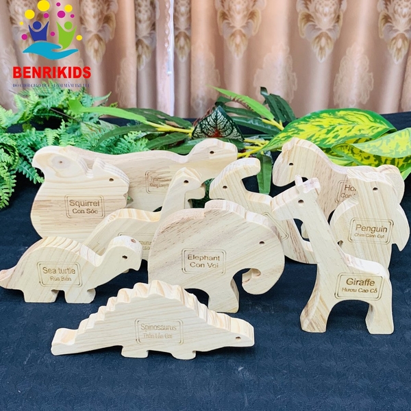 Đồ chơi trẻ em con thú bằng gỗ lắp ghép phù hợp cho trẻ từ 2 đến 5 tuổi, giúp các bé phát triển tư duy sáng tạo, giải trí sau những giờ học căng thẳng.Đồ chơi được làm bằng gỗ thuần mộc an toàn và sạch, tô vẽ sáng tạo, trò chơi xếp thú cân bằng, học tiếng anh các con thú, làm quà tặng.Với món đồ chơi này bé có thể học tiếng anh qua mỗi tên con vật. Shop Benrikids xin giới thiệu bộ 10 con thú bằng gỗ gồm: Voi, Khủng long bạo chúa, Khung long mào kiếm, Khủng long cổ dài, Thằn lằn gai, Chim cánh cụt, Sóc, Hươu cao cổ, Ngựa,Rùa biển