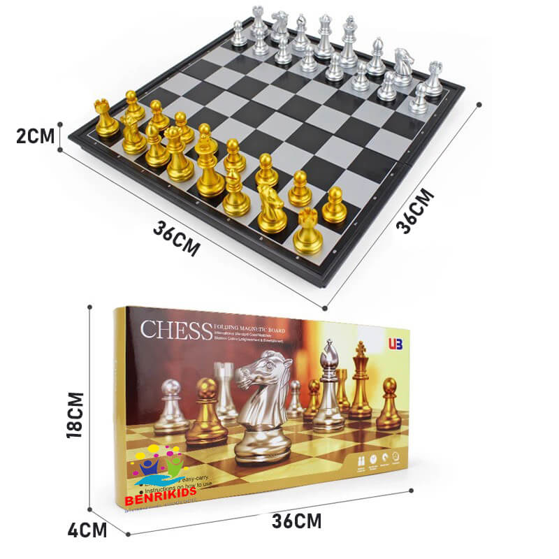Bộ Cờ Vua Quốc Tế Gắn Nam Châm Phủ Nhũ Vàng – Bạc Kích Thước 36 × 36 x 2 cm