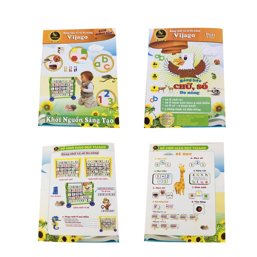 Sản phẩm gồm: 29 ô chữ cái tiếng việt, 29 ô hình ảnh theo 5 chủ điểm, 10 ô số, 9 ô hình khối cùng 4 phép tính và dấu bằng.