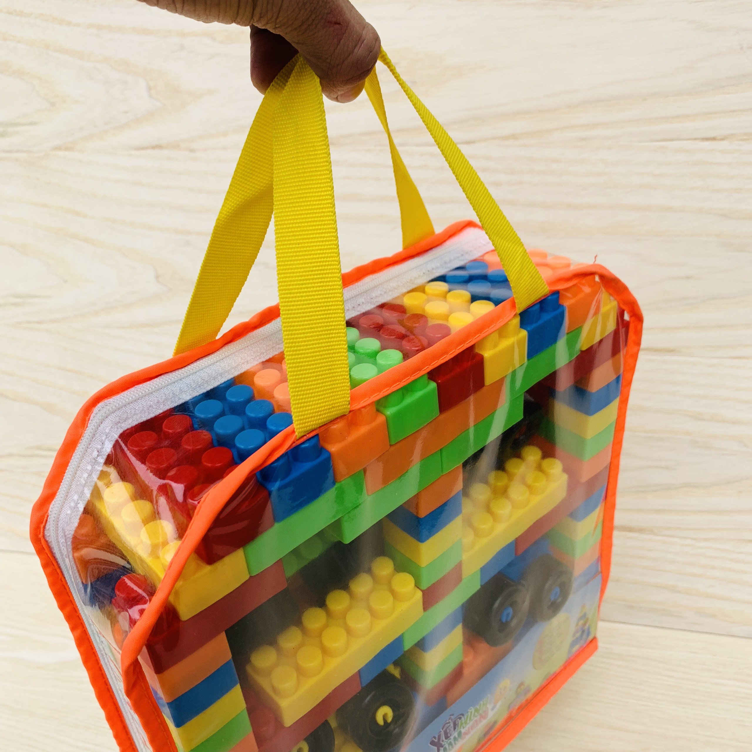 - Đồ chơi xếp hình 155 chi tiết làm bằng nhựa nguyên sinh với các miếng ghép to nên bố mẹ hoàn toàn yên tâm cho bé chơi, không sợ con ngậm, nuốt các chi tiết.