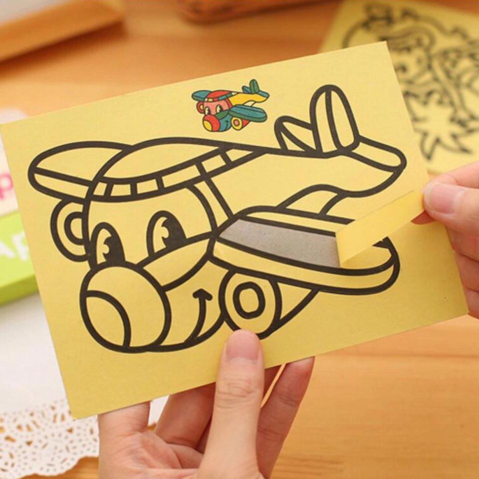 Tranh cát trẻ em được in, cắt trên khổ giấy 10x5 cm với rất nhiều mẫu từ hoa, lá, đồ vật, hình ảnh hoạt hình,…giúp bé nhận biết và vui đùa với màu sắc