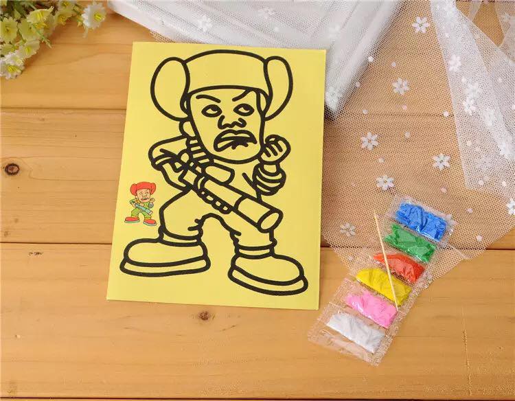 - Tranh cát trẻ em có hình mẫu cho sẵn hoặc tự do tô màu cát.