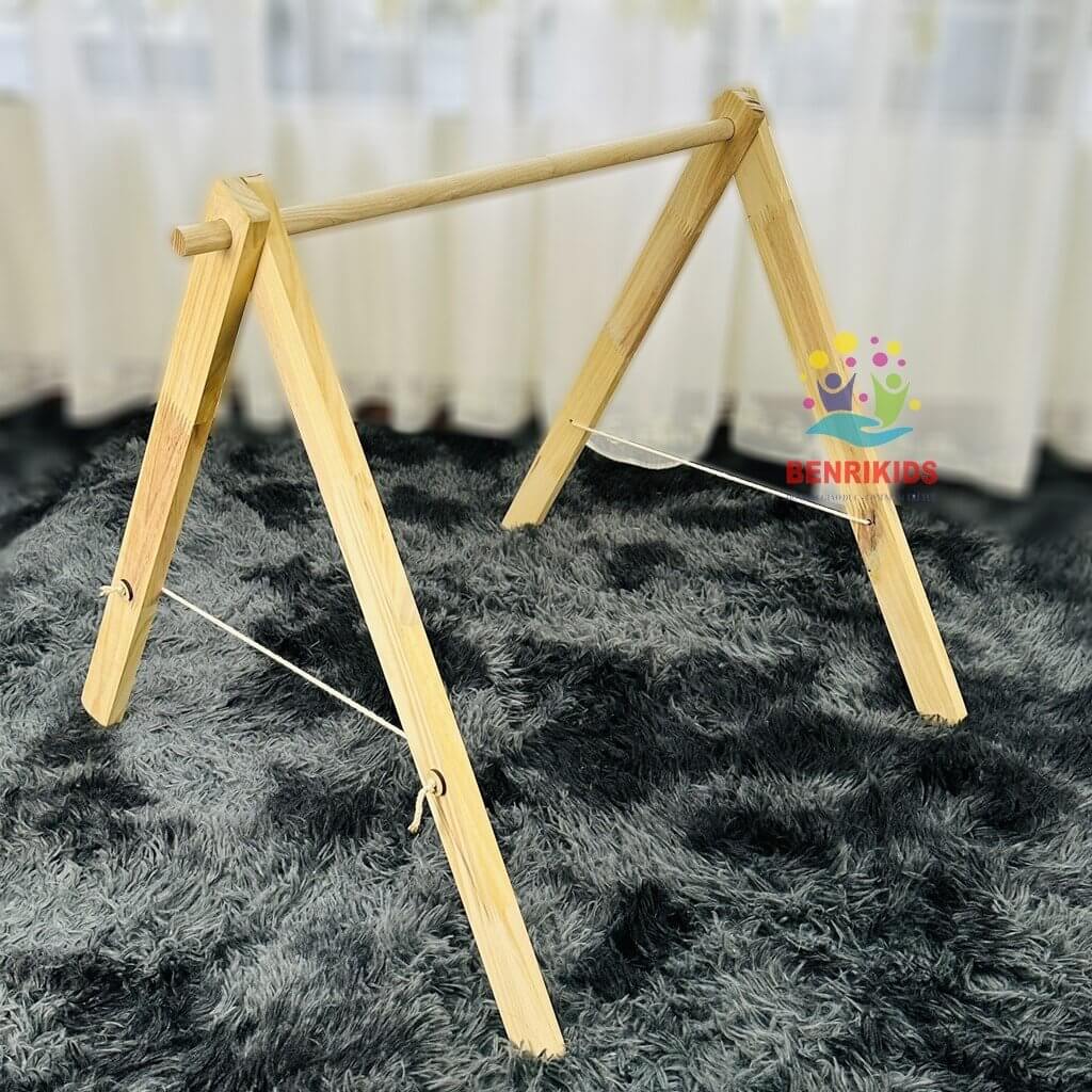 Kệ chữ A hay còn gọi là kệ treo đồ sơ sinh cho trẻ kết hợp cùng bóng múi bằng gỗ Montessori luyện chân cho trẻ rất cần thiết tiện dụng, cho các bé sơ sinh.