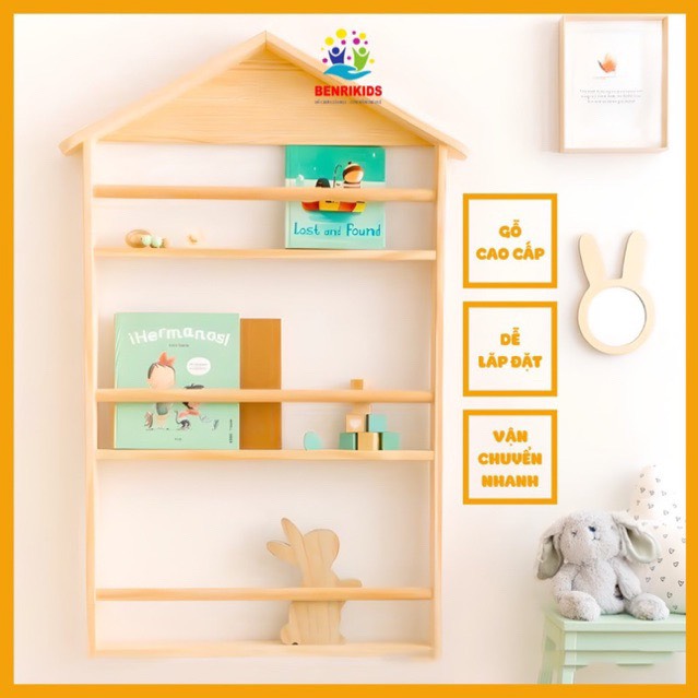 KỆ SÁCH TREO TƯỜNG HÌNH NGÔI NHÀ KÍCH THƯỚC LỚN CHO BÉ