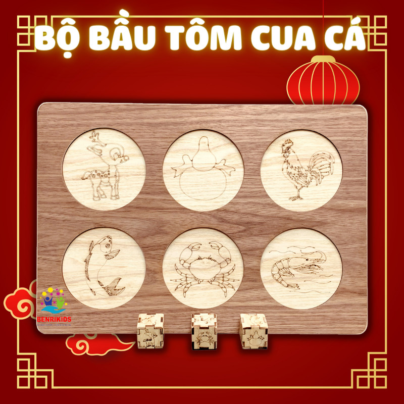 NHẮC ĐẾN TẾT LÀ KHÔNG THỂ NÀO CHÚNG TA QUÊN ĐƯỢC NHỮNG TRÒ CHƠI DÂN GIAN, NÓ NHƯ ĐÃ TRỞ THÀNH MÓN ĂN TINH THẦN ĐI SÂU VÀO TIỀM THỨC MỖI CHÚNG TA. BENRIKIDS MỚI CHO RA BỘ SẢN PHẨM PHỤC VỤ CHO KỲ NGHỈ TẾT THÊM PHẦN NÁO NHIỆT, THÊM PHẦN VUI NHỘN: BỘ LẮC TÔM CUA CÁ PHIÊN BẢN GỖ THUẦN MỘC ĐẸP XỊN SÒ.