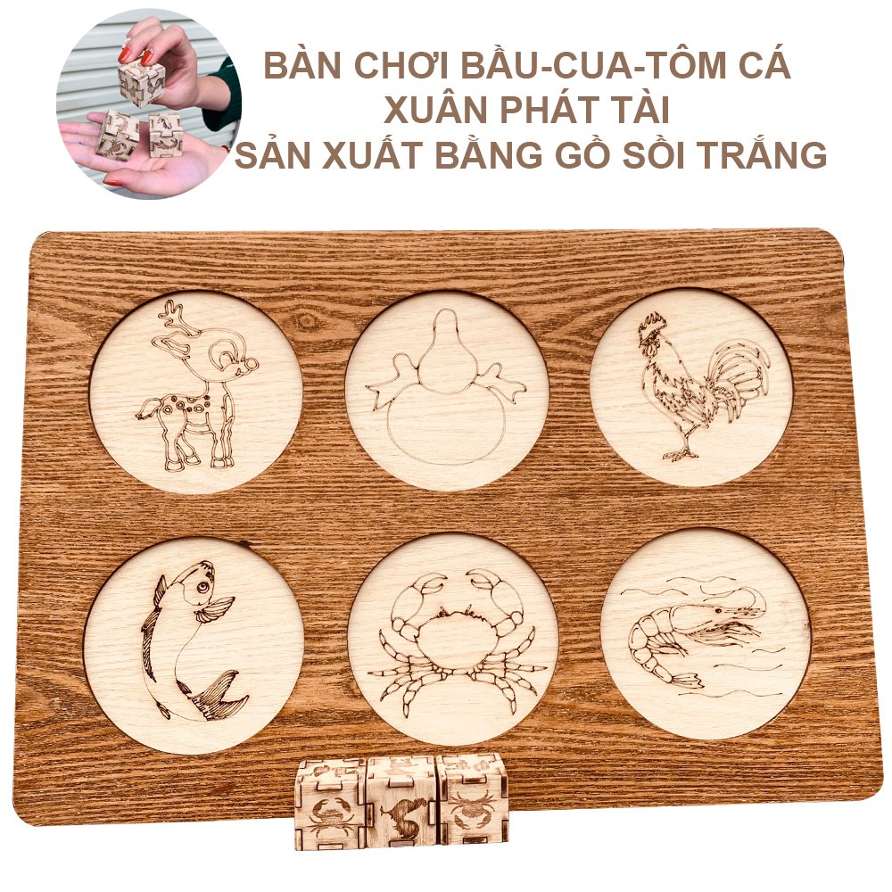Bầu Cua Tôm Cá, Bầu Cua Tôm Cọp, trò chơi ngày tết, Tết là lễ thường tụ tập nhiều người lại vui chơi nói chuyện, game bầu cua tôm cá khá quen thuộc phù hợp với trẻ em lẫn người lớn chơi với nhau. Sản Phẩm được cải tiến nâng cấp thành bản gỗ màu sắc tự nhiên nhưng không kém phần sang chảnh, rất bắt mắt. Khách hàng "chỉ cần săm một lần mà chơi mãi mãi"